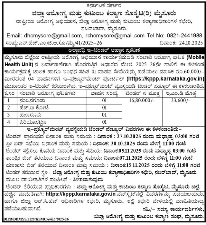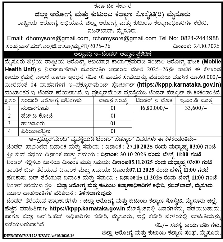ಜಿಲ್ಲಾ ಆರೋಗ್ಯ ಮತ್ತು ಕುಟುಂಬ ಕಲ್ಯಾಣ ಸೊಸೈಟಿ(ರಿ), ಮೈಸೂರು