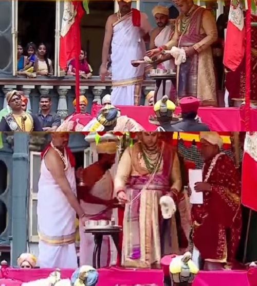 ಬೆಳಗ್ಗೆ ಅರಮನೆಯಲ್ಲಿ ಚಂಡಿಕಾ ಹೋಮ ನಡೆಯಿತು. ಅರಮನೆಯಿಂದ ಕೋಡಿ ಸೋಮೇಶ್ವರ ದೇವಾಲಯಕ್ಕೆ ಆಯುಧಗಳನ್ನು ಪಲ್ಲಕ್ಕಿಯಲ್ಲಿ ರವಾನಿಸಿ ಶುಚಿಗೊಳಿಸಿದ ಬಳಿಕ ಆಯುಧಗಳನ್ನ ಪಲ್ಲಕಿಯಲ್ಲಿ ವಾಪಸ್ ಅರಮನೆಗೆ ರವಾನೆ ಮಾಡಲಾಯಿತು. ನಂತರ ಅರಮನೆಯ ಆನೆ ಬಾಗಿಲು ಮೂಲಕ ಕಲ್ಯಾಟಮಂಟಪಕ್ಕೆ ಕೊಂಡೊಯ್ದು ಜೋಡಣೆ ಕಾರ್ಯ ನಡೆದಿದ್ದು, ಸಿಂಹಾಸನಕ್ಕೆ ಜೋಡಿಸಿದ್ದ ಸಿಂಹಕ್ಕೆ ಪೂಜೆ ಯದುವೀರರು ಪೂಜೆ ಸಲ್ಲಿಸಿದರು. ಆ ನಂತರ ರಾಜಪುರೋಹಿತರ ಮಾರ್ಗದರ್ಶನದಂತೆ ಯದುವೀರ ಕೃಷ್ಣದತ್ತ ಚಾಮರಾಜ ಒಡೆಯರ್ ಆಯುಧ ಪೂಜೆ ನೆರವೇರಿಸಿದರು.