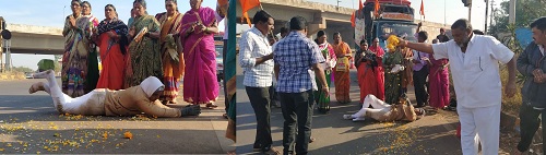ಶಶಿಕಲಾ ಎಂಬುವವರು ದೇಶದಲ್ಲಿ ಕೋವಿಡ್ ಮುಕ್ತವಾದರೇ ಉರುಳುಸೇವೆ ಮಾಡುವುದಾಗಿ ಹರಕೆ ಹೊತ್ತಿದ್ದರು. ನವೆಂಬರ್ 11 ರಿಂದಲೇ ರಾಷ್ಟೀಯ ಹೆದ್ದಾರಿ 50ರಿಂದ ಶಶಿಕಲಾ ಅವರು ಉರುಳು ಸೇವೆ ಮಾಡುತ್ತಿದ್ದಾರೆ.