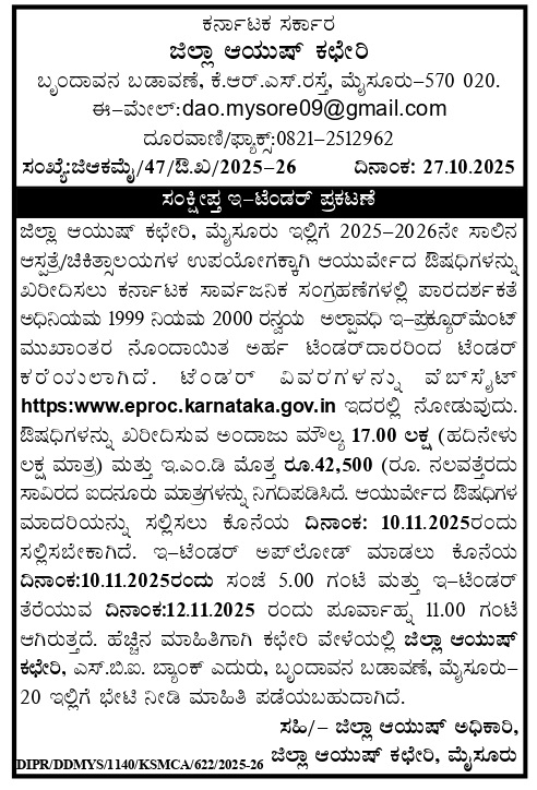 ಜಿಲ್ಲಾ ಆಯುಷ್ ಕಛೇರಿ, ಮೈಸೂರು
