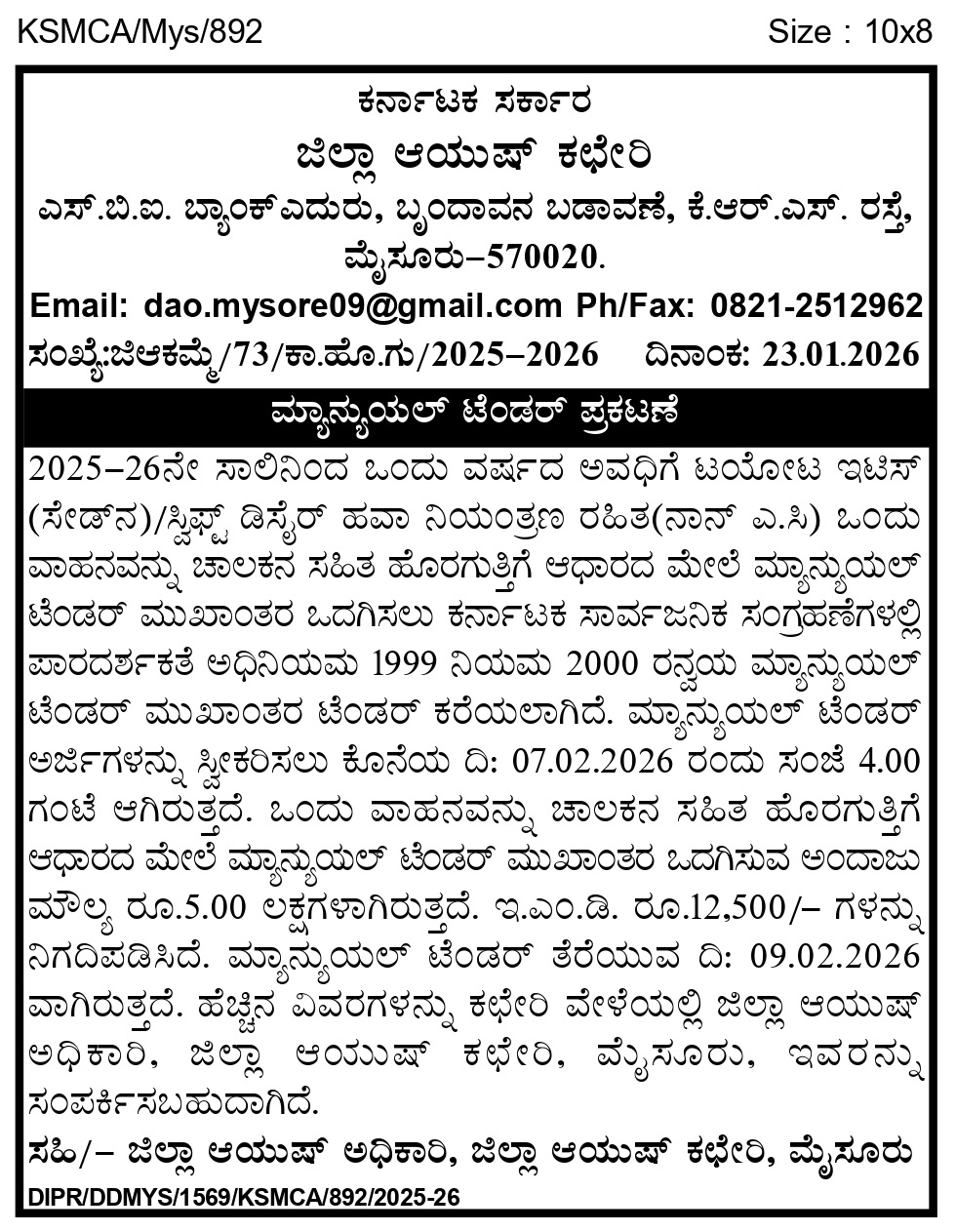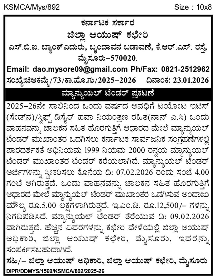 ಜಿಲ್ಲಾ ಆಯುಷ್ ಕಛೇರಿ, ಮೈಸೂರು