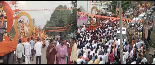 ಟ್ರ್ಯಾಕ್ಟರ್‌ ಗಳಲ್ಲಿ ಉತ್ಸವ ಮೂರ್ತಿಗಳನ್ನು ಇಟ್ಟು ಶೋಭ ಯಾತ್ರೆ‌ ಕೈಗೊಂಡಿದ್ದು ಪುಷ್ಪಾರ್ಚನೆ ಮಾಡುವ ಮೂಲಕ  ಸಂಸದ ಯದುವೀರ್ ಕೃಷ್ಣದತ್ತ ಚಾಮರಾಜ ಒಡೆಯರ್, ಮಾಜಿ ಶಾಸಕ ಹೆಚ್.ಪಿ ಮಂಜುನಾಥ್, ಶಾಸಕ ಹರೀಶ್‌ ಗೌಡ, ಗಾವಡಗೆರೆ ಶ್ರೀಗಳು ಶೋಭಾಯಾತ್ರೆಗೆ ಚಾಲನೆ ನೀಡಿದರು.