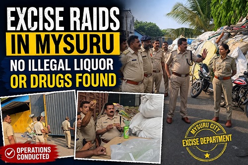 ಮೈಸೂರು, ಏಪ್ರಿಲ್, 29,2026 (www.justkannada.in): ಅಬಕಾರಿ ಇಲಾಖೆಯ ವತಿಯಿಂದ ಮೈಸೂರು ನಗರ ಜಿಲ್ಲೆಯ ವಿವಿಧ ಅನುಮಾನಾಸ್ಪದ ಸ್ಥಳಗಳಲ್ಲಿ ಇಂದು ವ್ಯಾಪಕ ದಾಳಿ ನಡೆಸಲಾಗಿದೆ.