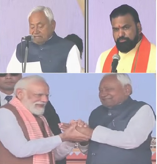 ಬಿಹಾರ ಪಾಟ್ನಾದ ಗಾಂಧಿ ಮೈದಾನದಲ್ಲಿ ನಡೆದ ಸಮಾರಂಭದಲ್ಲಿ ಬಿಹಾರದ ಮುಖ್ಯಮಂತ್ರಿಯಾಗಿ ನಿತೀಶ್ ಕುಮಾರ್ ಹಾಗೂ ಉಪಮುಖ್ಯಮಂತ್ರಿಗಳಾಗಿ ಬಿಜೆಪಿಯ ಸಾಮ್ರಾಟ್ ಚೌದರಿ, ವಿಜಯ್ ಕುಮಾರ್ ಸಿನ್ಹಾ ಪ್ರಮಾಣ ವಚನ ಸ್ವೀಕಾರ ಮಾಡಿದರು. ರಾಜ್ಯಪಾಲ ಆರಿಫ್ ಮೊಹಮ್ಮದ್ ಖಾನ್ ಪ್ರತಿಜ್ಞಾವಿಧಿ ಬೋಧಿಸಿದರು.