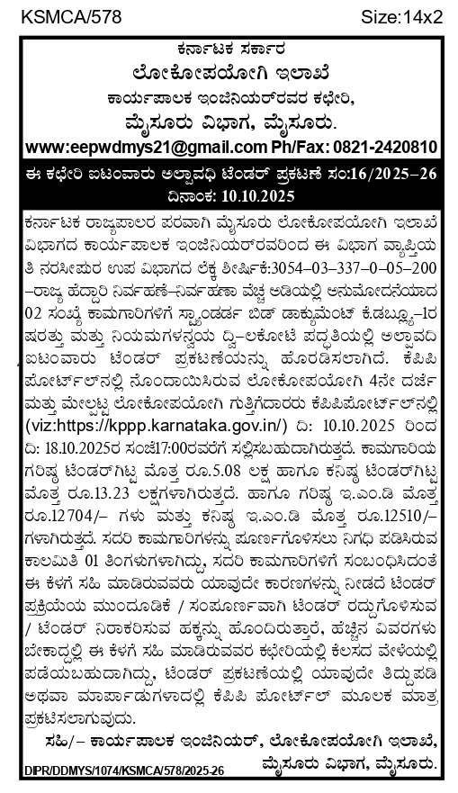 ಲೋಕೋಪಯೋಗಿ ಇಲಾಖೆ , ಮೈಸೂರು