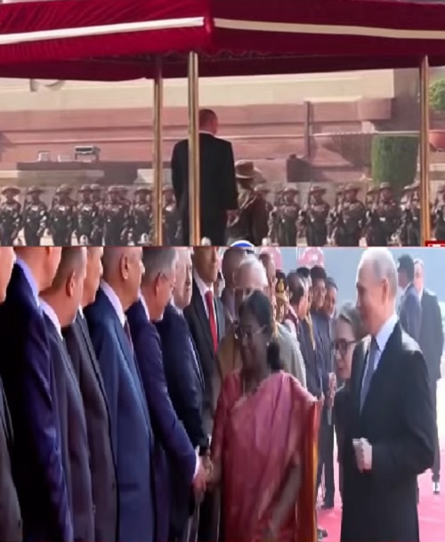 ಇದಕ್ಕೂ ಮೊದಲು ರಾಷ್ಟ್ರಪತಿ ಭವನಕ್ಕೆ ಭೇಟಿ ನೀಡಿದ ವ್ಲಾಡಿಮನ್ ಪುಟಿನ್ ಅವರನ್ನ ರಾಷ್ಟ್ರಪತಿ ದ್ರೌಪದಿ ಮುರ್ಮು ಮತ್ತು ಪ್ರಧಾನಿ ಮೋದಿ ಸ್ವಾಗತಿಸಿದರು. ನಂತರ ಪುಟಿನ್ ಭಾರತೀಯ ಸೇನೆಯಿಂದ ಗೌರವ ವಂದನೆ ಸ್ವೀಕಾರ ಮಾಡಿದರು.