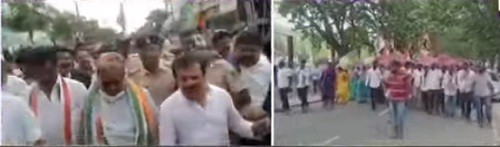 ಇನ್ನು ಶಿವಮೊಗ್ಗದಲ್ಲಿ ಕೆಪಿಸಿಸಿ ಕಾರ್ಯಾಧ್ಯಕ್ಷ ಆರ್ ಧೃವನಾರಾಯಣ್ ನೇತೃತ್ವದಲ್ಲಿ ಪ್ರತಿಭಟನೆ ನಡೆಯಿತು. ಮಾಜಿ ಸಚಿವ  ಕಿಮ್ಮನೆ ರತ್ನಾಕರ್, ಬೇಳೂರು ಗೋಪಾಲಕೃಷ್ಣ  ಪ್ರತಿಭಟನೆಯಲ್ಲಿ ಪಾಲ್ಗೊಂಡಿದ್ದರು.
