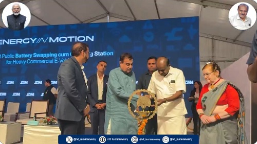Key words: Union Minister, HDK, inaugurates, Heavy-Duty Battery Exchange Centre